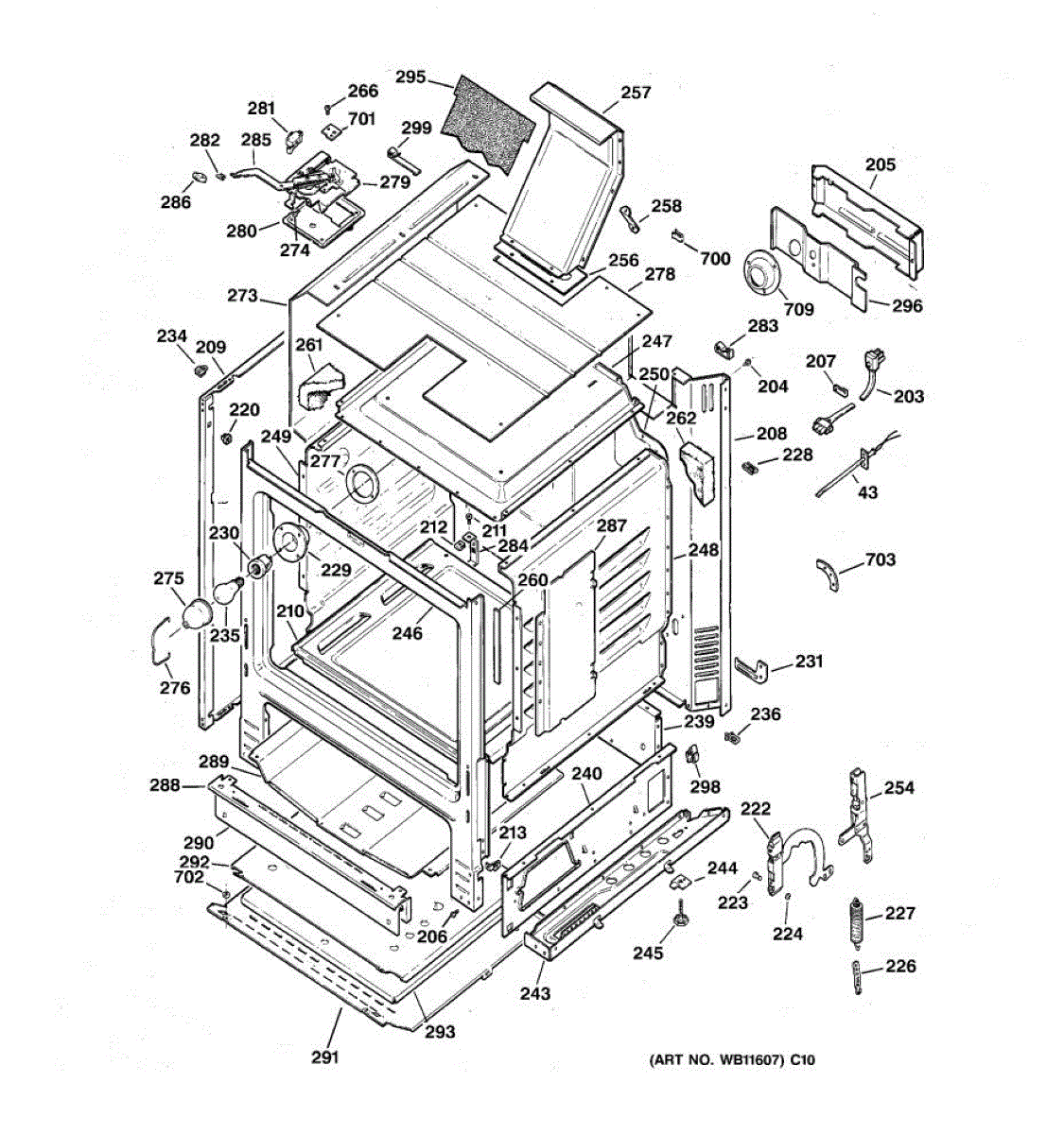 Frame weld assembly for ranges. Structural component that forms part of the cabinet framework. Replace if bent, cracked, or damaged during installation or use.