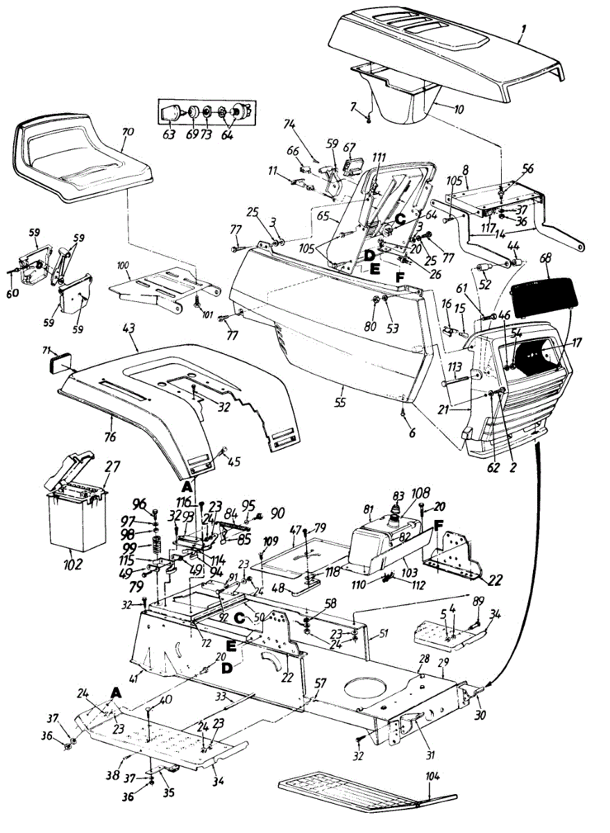 Replacement gas tank for lawn tractors and riding mowers. Installs on the frame to hold fuel. Needed when original tank is cracked, leaking, or damaged.