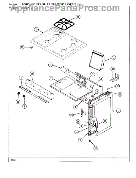 Parts for Magic Chef 31MA-3KX-OC: 02 - Body / Control Panel / Top Assembly Parts