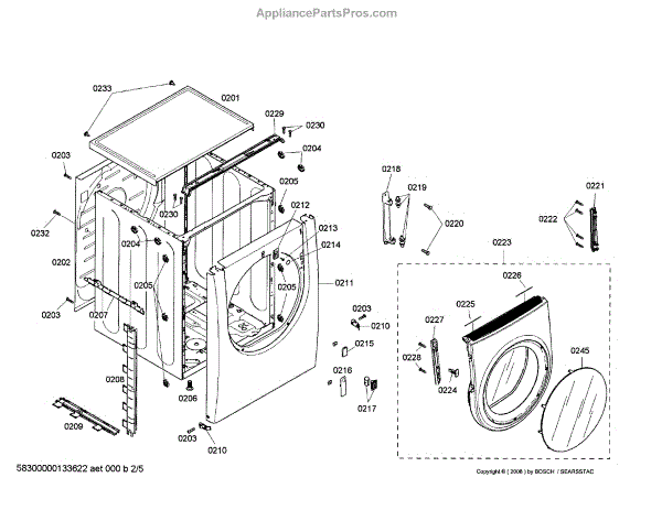 The Door Hinge is an OEM part for Bosch dryers. This hinge is designed to securely attach the dryer door to the frame, allowing it to open and close smoothly while maintaining a proper seal during operation.