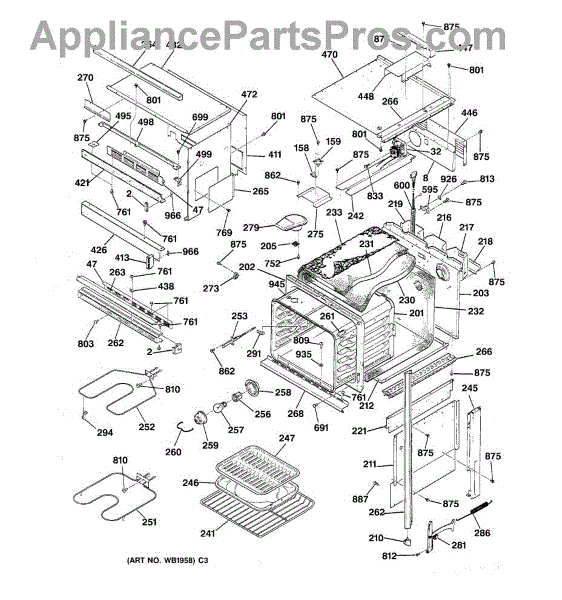 This Back main is the oven's rear chassis panel that supports internal components and protects wiring. It restores structural support and helps prevent contact with hot or moving parts for safe operation. What it does: