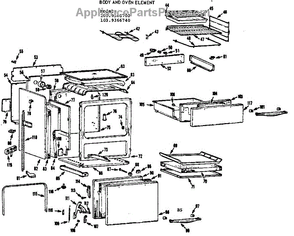 Parts for Kenmore 103.9366700 (1039366700, 103 9366700): Body And Oven Element Parts
