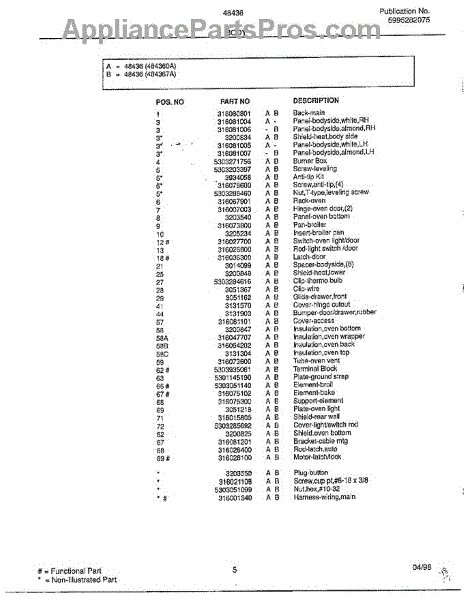 Parts for Frigidaire 484360A: Body Page 2 Parts
