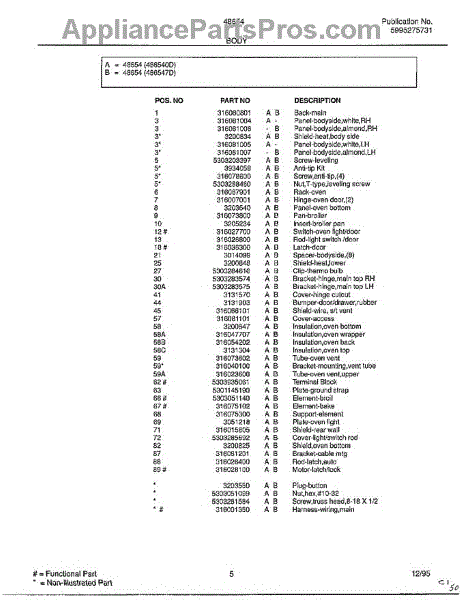 Parts for Frigidaire 486547D: Body Page 2 Parts