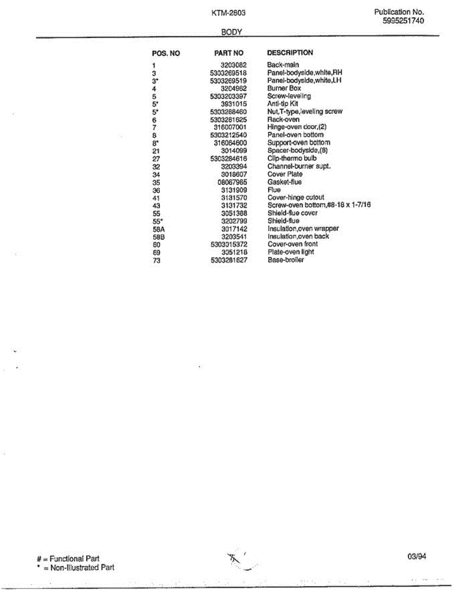 Parts for Frigidaire KTM-2803: Body Page 2 Parts