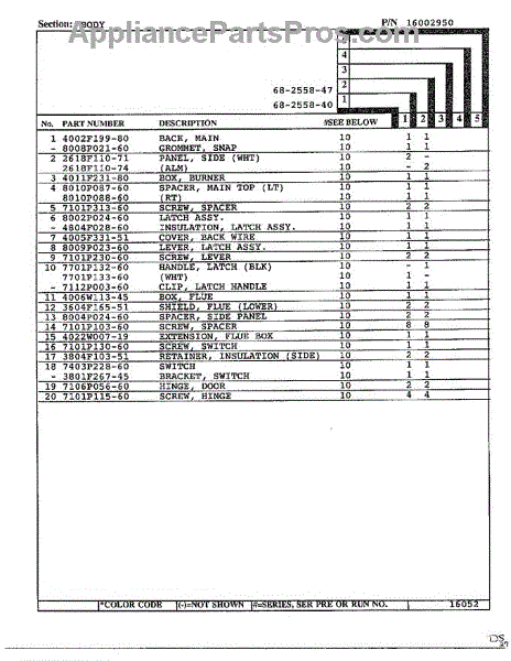 This factory screw secures appliance components to their mounting points. Replace missing, worn, or stripped hardware to restore a tight fit, proper alignment, and quieter operation across the affected assembly.