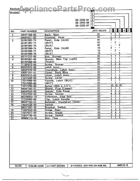 This factory screw secures appliance components to their mounting points. Replace missing, worn, or stripped hardware to restore a tight fit, proper alignment, and quieter operation across the affected assembly.