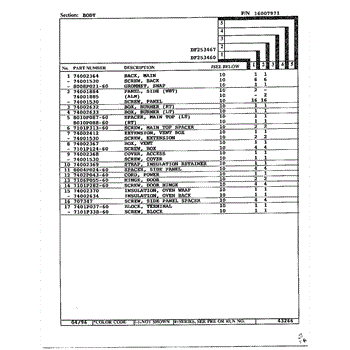 This factory screw secures appliance components to their mounting points. Replace missing, worn, or stripped hardware to restore a tight fit, proper alignment, and quieter operation across the affected assembly.