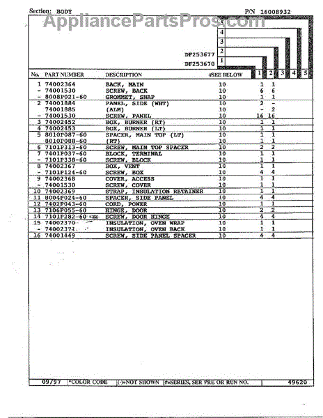 This factory screw secures appliance components to their mounting points. Replace missing, worn, or stripped hardware to restore a tight fit, proper alignment, and quieter operation across the affected assembly.