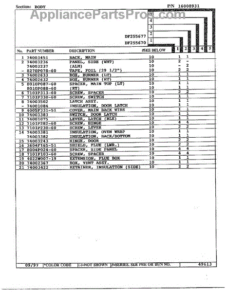 Parts for Magic Chef DF255677: Body Page 2 Parts