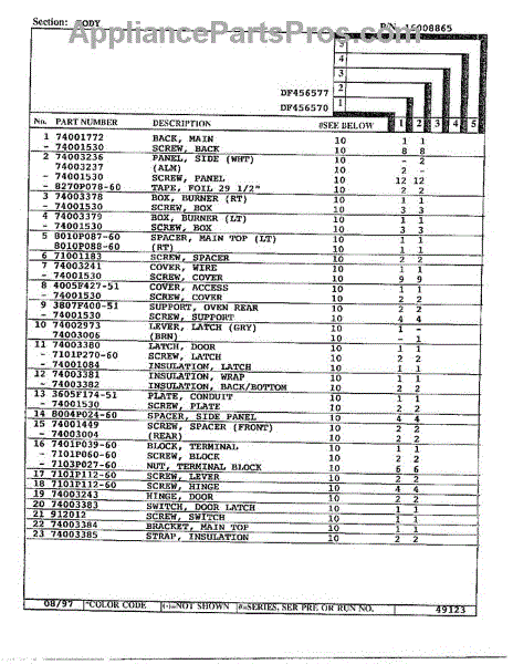 This factory screw secures appliance components to their mounting points. Replace missing, worn, or stripped hardware to restore a tight fit, proper alignment, and quieter operation across the affected assembly.