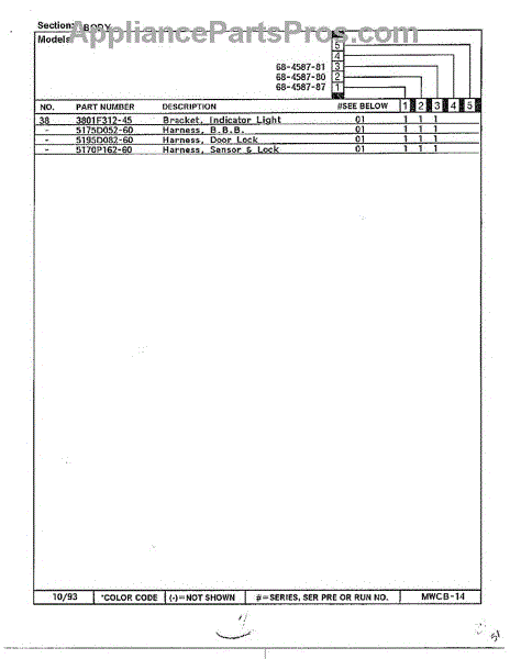 This factory screw secures appliance components to their mounting points. Replace missing, worn, or stripped hardware to restore a tight fit, proper alignment, and quieter operation across the affected assembly.