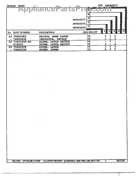 Parts for Magic Chef DF454676: Body Page 3 Parts