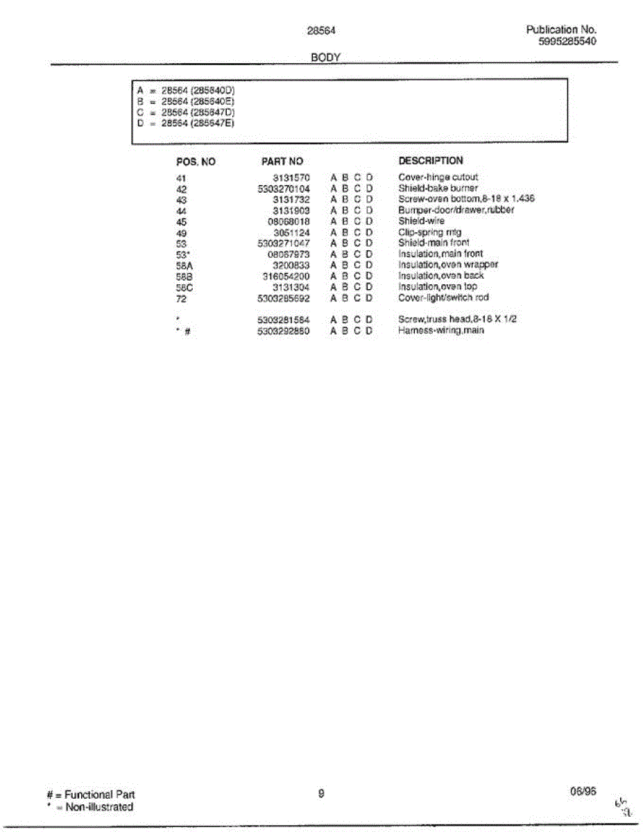 Parts for Frigidaire 285640E: Body Page 4 Parts