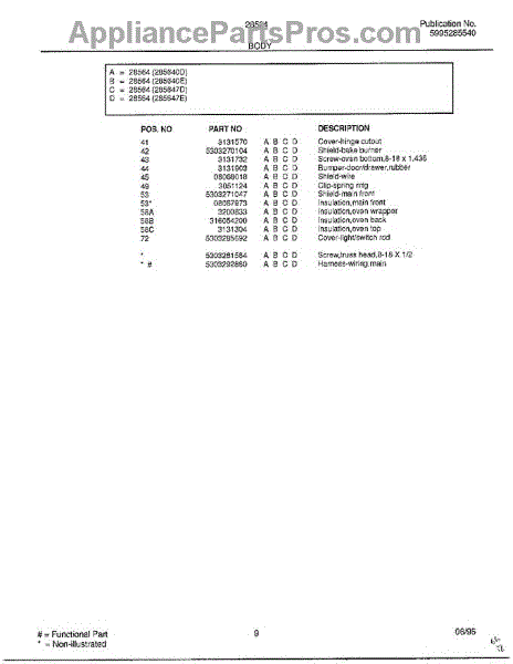 Parts for Frigidaire 285647D: Body Page 4 Parts