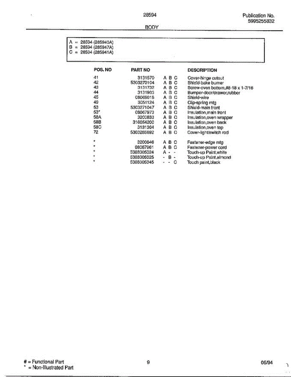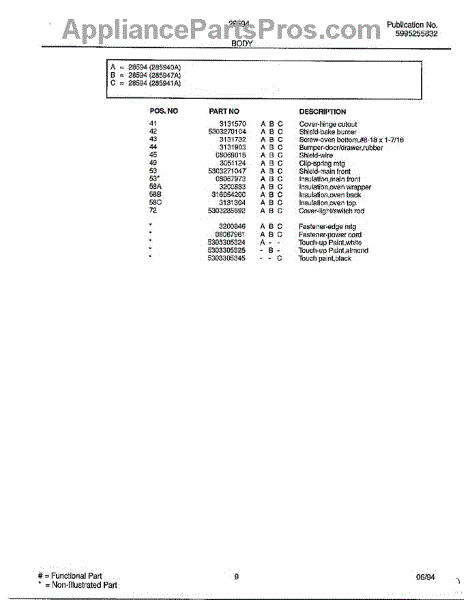Parts for Frigidaire 285941A: Body Page 4 Parts