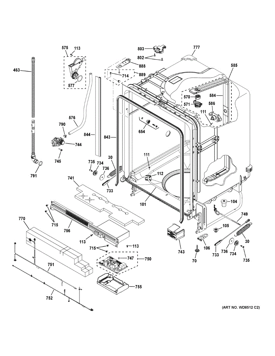 If your dishwasher won't start or specific functions fail, the DC wire harness may have failed. Connects control board to motor, pump, and sensors.