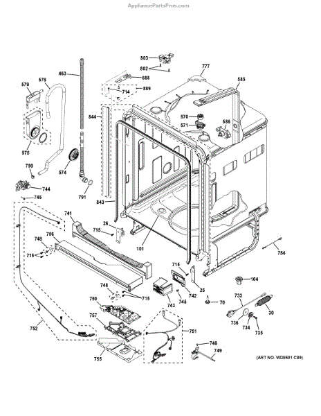 Fixes dishwashers that won't start, have no display, or run incomplete cycles. This control board manages all wash cycles. Moderate DIY, 1-2 hours.