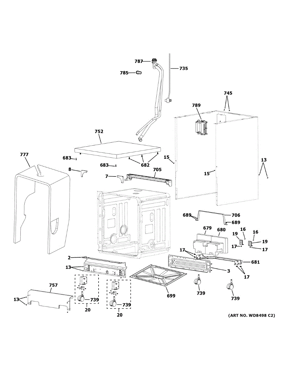The Caster is an OEM part for GE portable dishwashers. It is one of four casters that elevate the dishwasher off the floor and provide mobility for installation and cleaning access. Causes of a bad caster can include cracks, breaks, or loose components in the plastic caster housing due to years of use and stress. Mineral buildup or internal rust may cause roller or bearing malfunctions. Symptoms of a bad caster include: