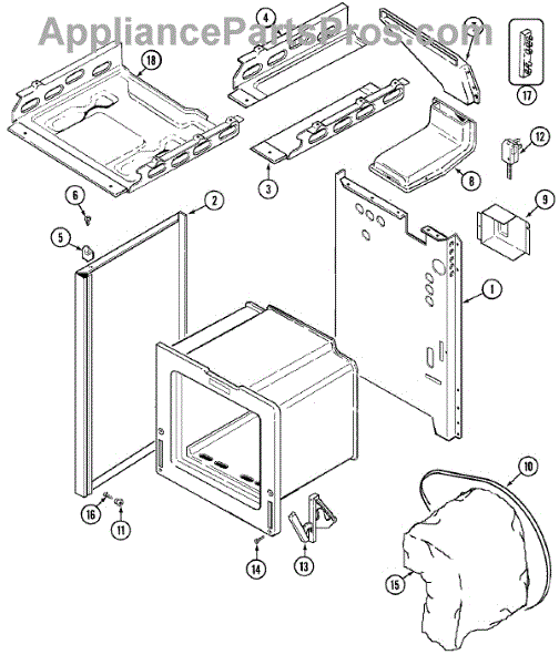 This burner box is the oven's metal housing that holds and positions the bake/broil burners and channels gas flames for proper heating. Replacing a damaged box restores safe flame direction and consistent oven operation. What it does