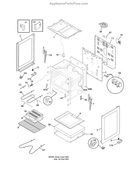 This oven insulation surrounds the oven cavity to retain heat and protect nearby components and cabinetry. Replacing a burnt or deteriorated insulation blanket restores temperature stability and helps keep exterior surfaces cooler on your range during cooking.