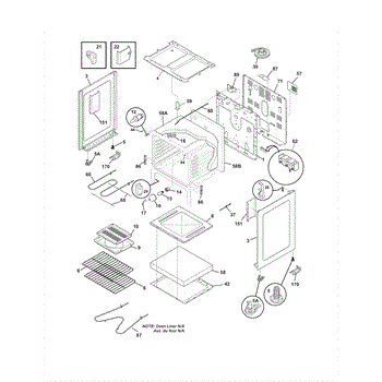 This oven insulation surrounds the oven cavity to retain heat and protect nearby components and cabinetry. Replacing a burnt or deteriorated insulation blanket restores temperature stability and helps keep exterior surfaces cooler on your range during cooking.