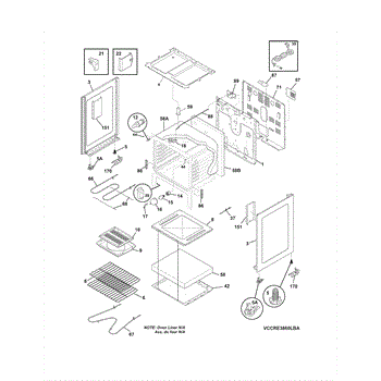 This oven insulation surrounds the oven cavity to retain heat and protect nearby components and cabinetry. Replacing a burnt or deteriorated insulation blanket restores temperature stability and helps keep exterior surfaces cooler on your range during cooking.
