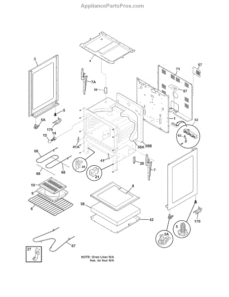 This oven insulation surrounds the oven cavity to retain heat and protect nearby components and cabinetry. Replacing a burnt or deteriorated insulation blanket restores temperature stability and helps keep exterior surfaces cooler on your range during cooking.