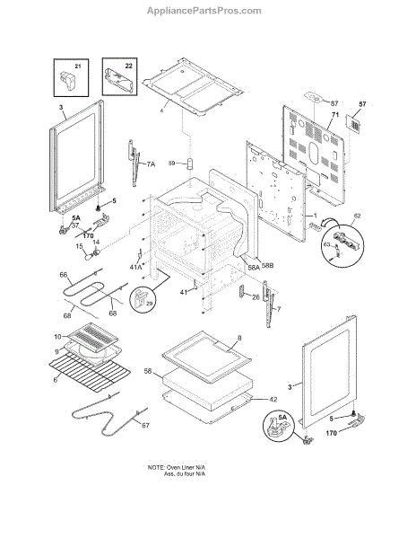This oven insulation surrounds the oven cavity to retain heat and protect nearby components and cabinetry. Replacing a burnt or deteriorated insulation blanket restores temperature stability and helps keep exterior surfaces cooler on your range during cooking.