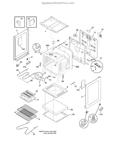 This oven insulation surrounds the oven cavity to retain heat and protect nearby components and cabinetry. Replacing a burnt or deteriorated insulation blanket restores temperature stability and helps keep exterior surfaces cooler on your range during cooking.