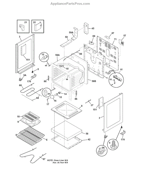 This oven insulation surrounds the oven cavity to retain heat and protect nearby components and cabinetry. Replacing a burnt or deteriorated insulation blanket restores temperature stability and helps keep exterior surfaces cooler on your range during cooking.
