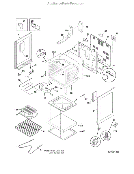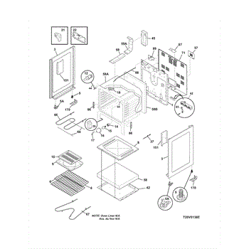 This oven insulation surrounds the oven cavity to retain heat and protect nearby components and cabinetry. Replacing a burnt or deteriorated insulation blanket restores temperature stability and helps keep exterior surfaces cooler on your range during cooking.