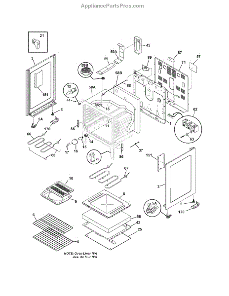 This oven insulation surrounds the oven cavity to retain heat and protect nearby components and cabinetry. Replacing a burnt or deteriorated insulation blanket restores temperature stability and helps keep exterior surfaces cooler on your range during cooking.