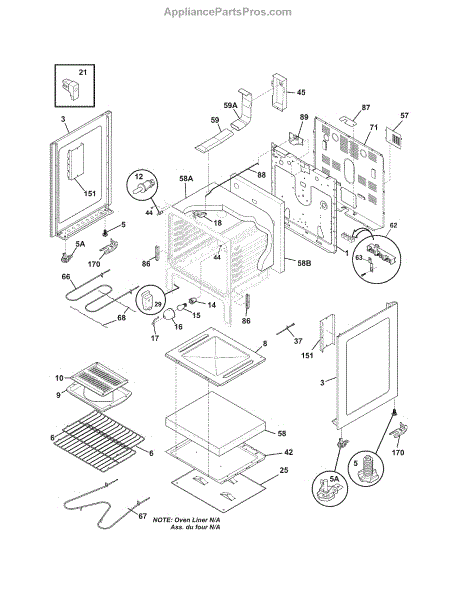 • Covers and seals the hole in the oven bottom to prevent debris buildup