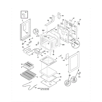 This oven insulation surrounds the oven cavity to retain heat and protect nearby components and cabinetry. Replacing a burnt or deteriorated insulation blanket restores temperature stability and helps keep exterior surfaces cooler on your range during cooking.