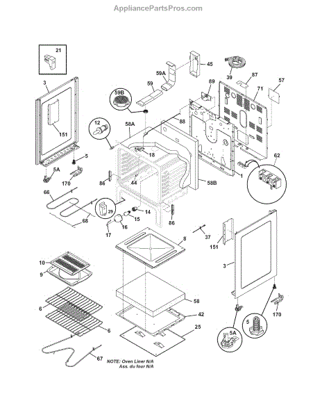 Molded insulation liner that fits inside the range oven cavity. Replace if yours is damaged, compressed, or missing to restore proper heat containment.