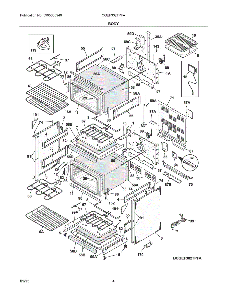 Broiler pan for electric and gas ranges. Installs in oven cavity for broiling. Replace if cracked, warped, rusted, or heavily stained beyond cleaning.