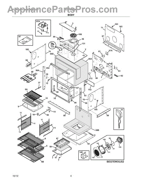 Positions and supports range components to maintain proper alignment. Replace if cracked, broken, or missing to prevent rubbing and ensure panels fit correctly.