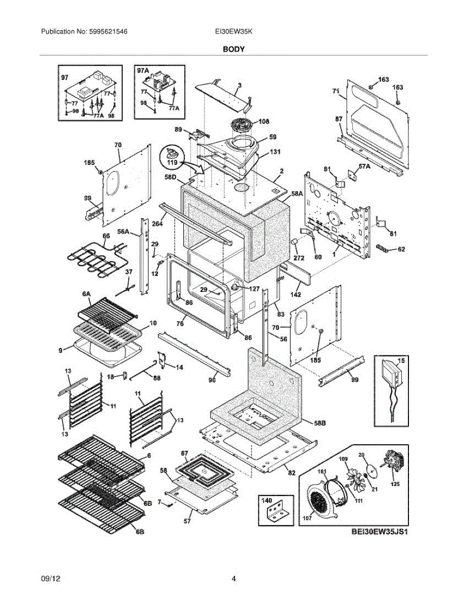 Insulates and cushions the oven cabinet interior. Replace if cracked, damaged, or missing to restore thermal separation and reduce condensation.
