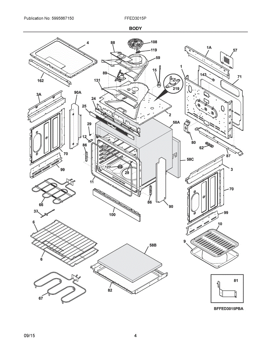 Broiler pan for electric and gas ranges. Installs in oven cavity for broiling. Replace if cracked, warped, rusted, or heavily stained beyond cleaning.