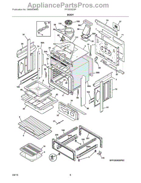 Broiler pan for electric and gas ranges. Installs in oven cavity for broiling. Replace if cracked, warped, rusted, or heavily stained beyond cleaning.