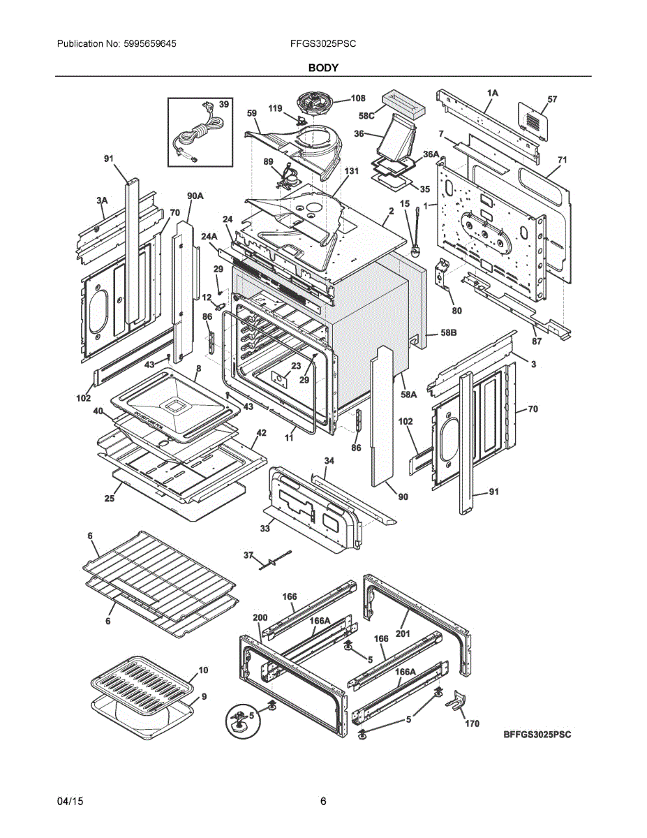 Broiler pan for electric and gas ranges. Installs in oven cavity for broiling. Replace if cracked, warped, rusted, or heavily stained beyond cleaning.