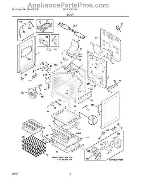 The Frigidaire Oven Rack is an OEM part for Frigidaire ranges and wall ovens. It provides an elevated surface for baking sheets, casserole dishes, and other cookware during the heating process. The rack measures approximately 24 inches wide by 16 inches deep. Causes of a bad oven rack could be cracks, bends, or breaks that develop from repeated expansion and contraction during heating. Normal wear from years of use can impact the integrity of welds or supports.