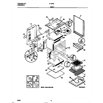 This oven insulation surrounds the oven cavity to retain heat and protect nearby components and cabinetry. Replacing a burnt or deteriorated insulation blanket restores temperature stability and helps keep exterior surfaces cooler on your range during cooking.