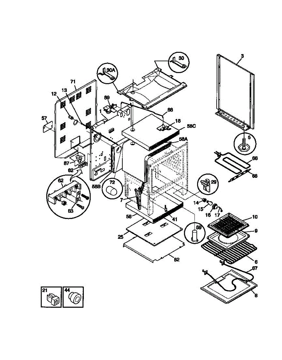 This oven insulation surrounds the oven cavity to retain heat and protect nearby components and cabinetry. Replacing a burnt or deteriorated insulation blanket restores temperature stability and helps keep exterior surfaces cooler on your range during cooking.