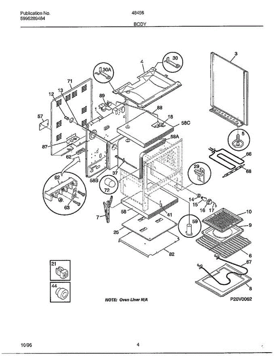 Fiberglass insulation panel that installs behind the oven cavity. Replaces missing, damaged, or rodent-chewed insulation to restore heat containment.