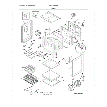 This oven insulation surrounds the oven cavity to retain heat and protect nearby components and cabinetry. Replacing a burnt or deteriorated insulation blanket restores temperature stability and helps keep exterior surfaces cooler on your range during cooking.