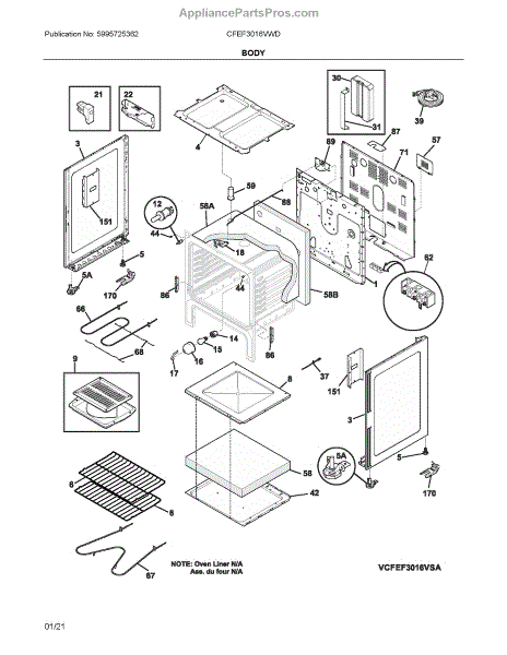 The Oven Bottom Panel is an OEM component for Frigidaire oven models. Located on the base of the oven interior, this metal panel provides structure and support.