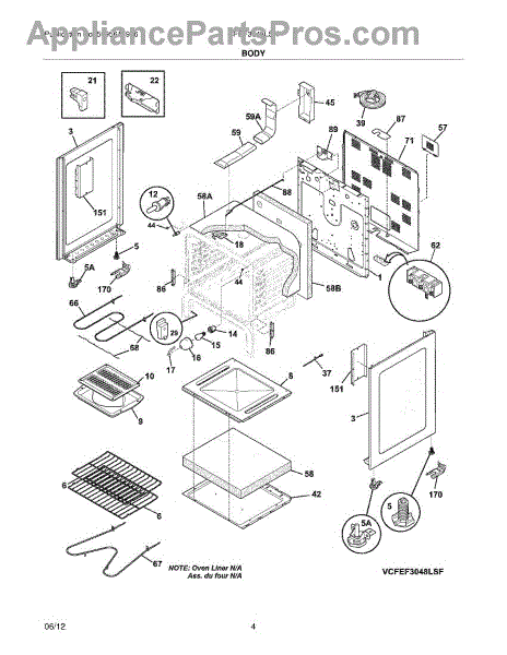 Molded insulation liner that fits inside the range oven cavity. Replace if yours is damaged, compressed, or missing to restore proper heat containment.
