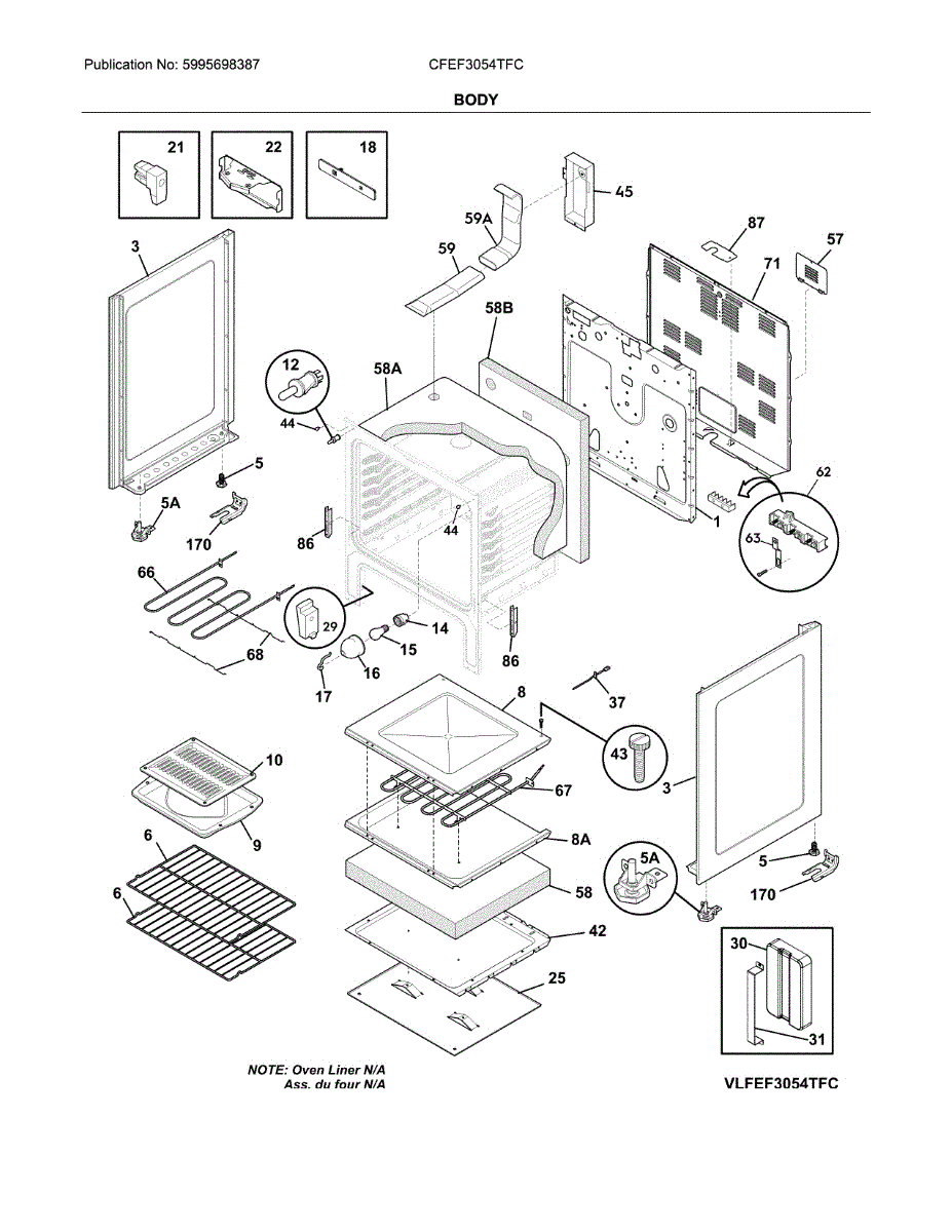 Insulation blanket that installs inside your range oven cavity for heat retention and sound dampening. Replace if torn, compressed, or missing.